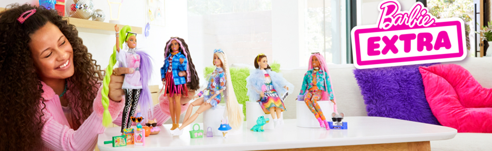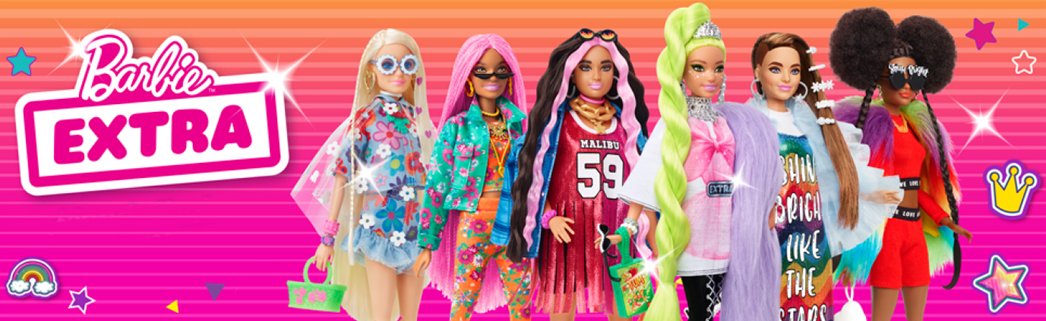 | Papusile Barbie® Extra etaleaza tinute indraznete si culori vii si iau atitudine! Fiecare papusa Barbie® are propriul stil jucaus si extravagant. Iar animalele lor de companie, fiecare diferit si adorabil, au si ele o personalitate puternica! Barbie® Extra permite copiilor sa exploreze exprimarea de sine prin stil si ofera o experienta de moda si stilizare captivanta, cu papusi articulate. Reprezinta distractie cu moda cu sclipici, ursuleti gumati, emoji si par distinctiv, aducand un vibe EXTRA oriunde merg. Fiecare se vinde separat, in limita stocului disponibil. Papusile nu isi pot mentine pozitia fara sprijin.